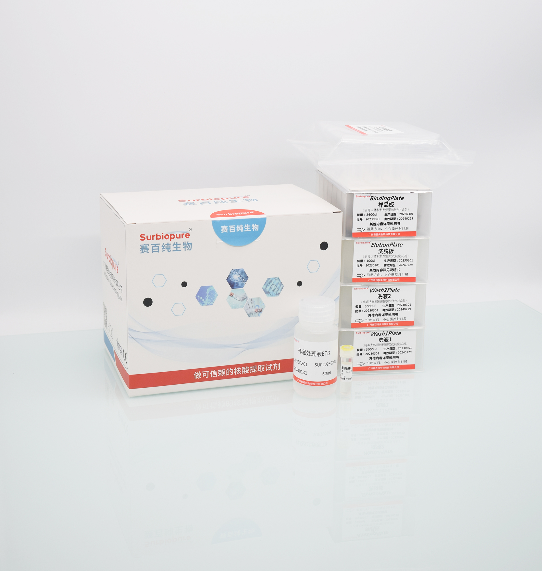 【原 理】樣本與病毒裂解緩沖液混合,使得病毒破碎并將核酸釋放。在裂解緩沖液中納米磁珠顆粒通過(guò)表面修飾的功能基團(tuán)能與游離的DNA/RNA特異性的結(jié)合,形成磁珠-DNA/RNA復(fù)合物。在外磁場(chǎng)力的作用下,將磁珠-DNA/RNA復(fù)合物轉(zhuǎn)移到洗滌緩沖液中,洗去多余的雜質(zhì)。再在外磁場(chǎng)力的作用下轉(zhuǎn)移到洗脫緩沖液中,將DNA/RNA洗脫回收。